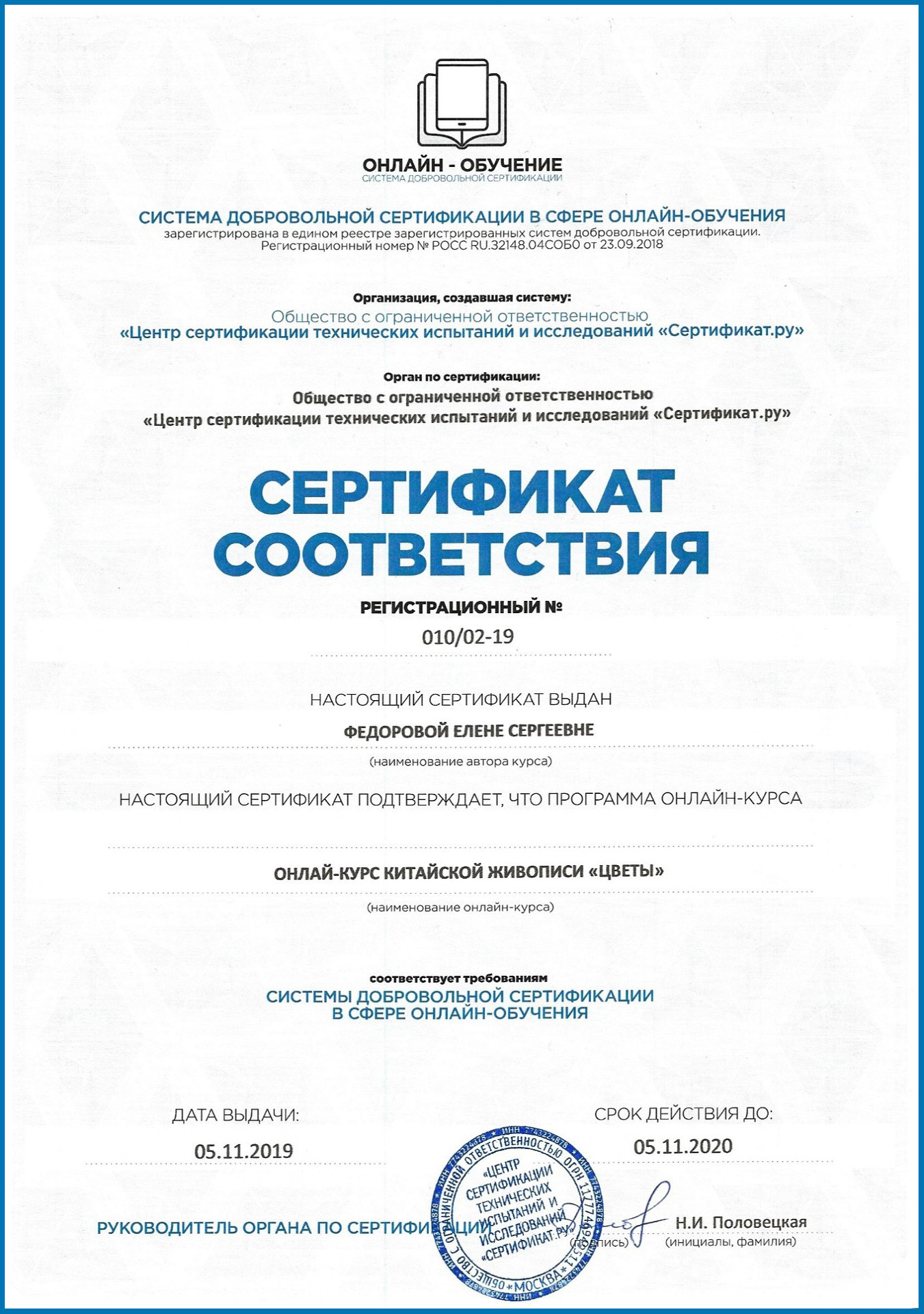 Сертификация представляет собой добровольное подтверждение соответствия структуры и содержания программы онлайн-курсов требованиям Стандарта СТО ОК01- 2019, действующего в рамках Системы сертификации в сфере онлайн-обучения.